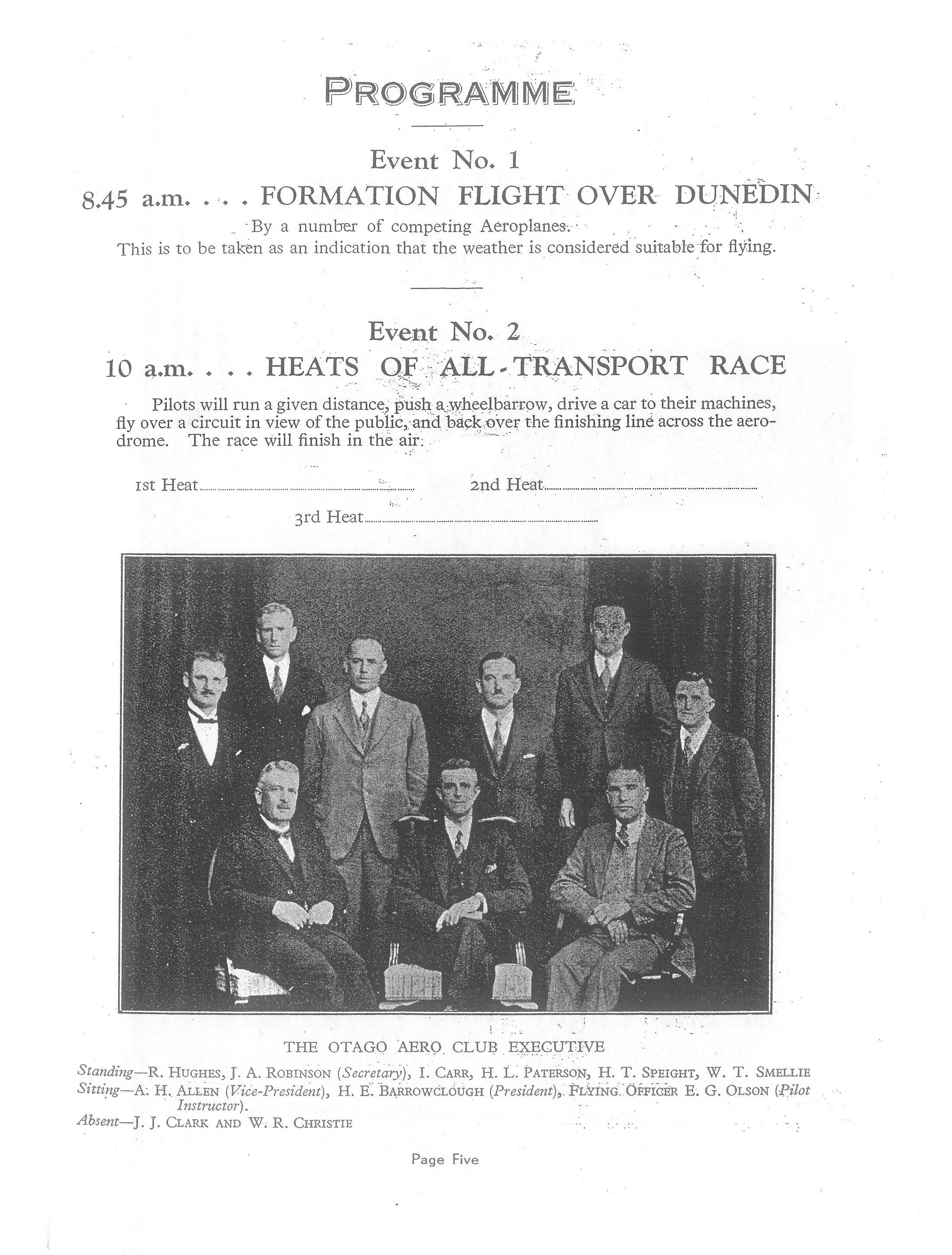 On the 21st February 1931, the Otago Aero Club hosted the grandly titled “Official South Island Air Pageant and Inaugural Meeting of The Otago Aero Club” at what was then called Otago Air Port, but would later become Taieri Airfield.